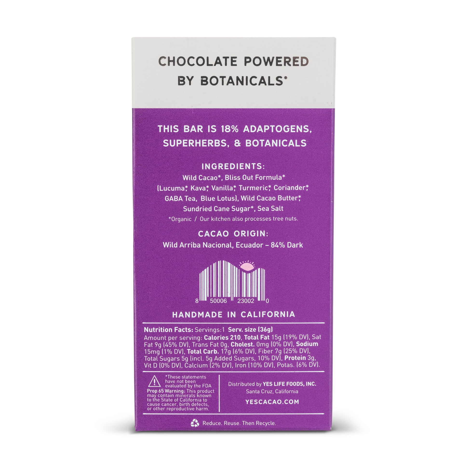 This is 100% chill out chocolate. When you feel the day pressing up against your comfort zone, cool your jets, take a bite, and relax into your flow state. This formula is all about unwinding the nervous system, quieting the mind, and finding that breath you’ve been looking for all day. Safe to enjoy before sleep too.