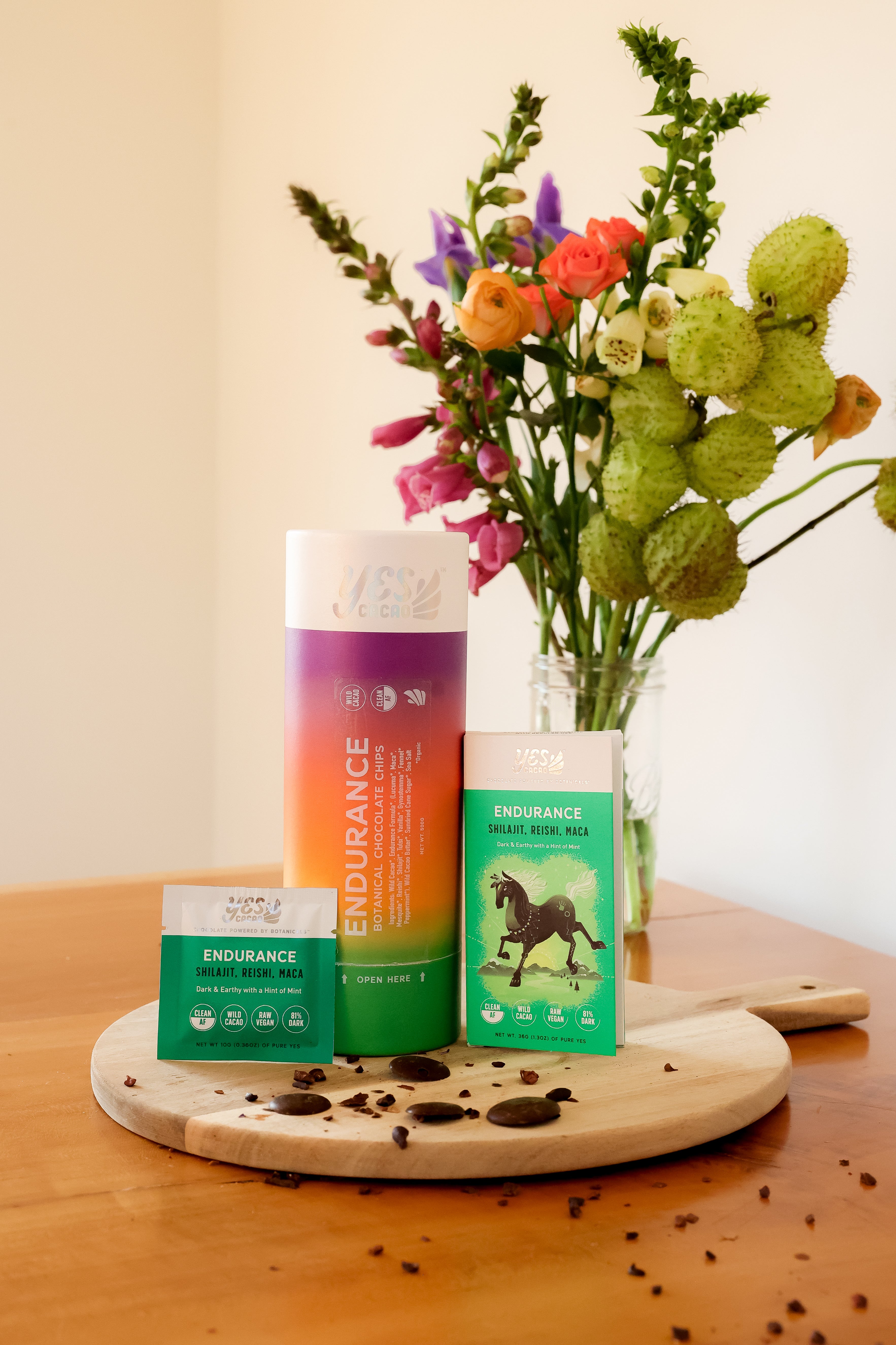 Organic Wild Cacao, Endurance Formula (Organic Lucuma, Organic Maca, Organic Mesquite, Organic Reishi, Organic Vanilla Bean, Shilajit, Organic Tulsi, Gynostemma, Organic Fennel Essential Oil, Organic Peppermint Oil) Organic Raw CleanCane™, Organic Wild Cacao Butter, Sea Salt