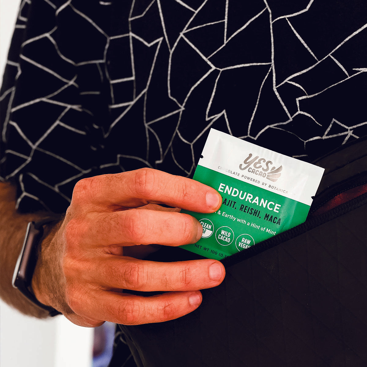 Stamina when you need the extra reserves. The Endurance formula pairs with your movement practice, whether it's running, cycling, swimming, dancing, hiking, martial arts, or taking a stroll in nature, this is the chocolate for you. With functional benefits from every ingredient in this bar, your physical energy will thank you.